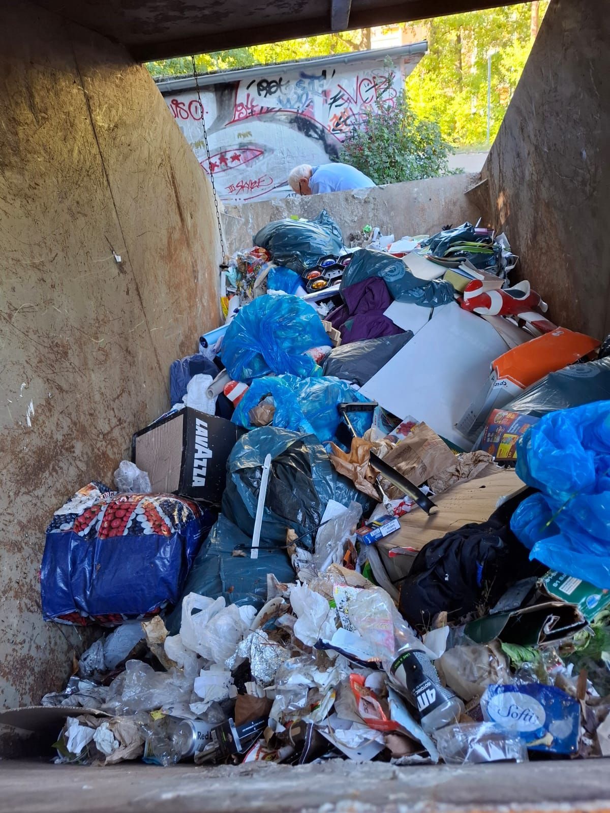 In der Saarmunder Straße erwartete uns doch wieder einiger Sperrmüll, dem wir mit der Sackkarre zu Leibe rückten. Mit vollem Einsatz wurden Flaschen, Verpackungen und weiterer Unrat aus den Büschen geholt, wobei einige Ratten aufgeschreckt wurden.